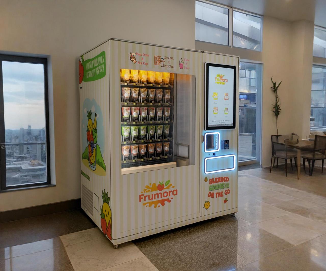 FRUMORA™ is an innovative food-tech venture bringing freshness, convenience, and health together through state-of-the-art smoothie vending machines. Our mission is to revolutionize the way Canadians consume smoothies — making them truly fresh blended, natural, and accessible anywhere, anytime.